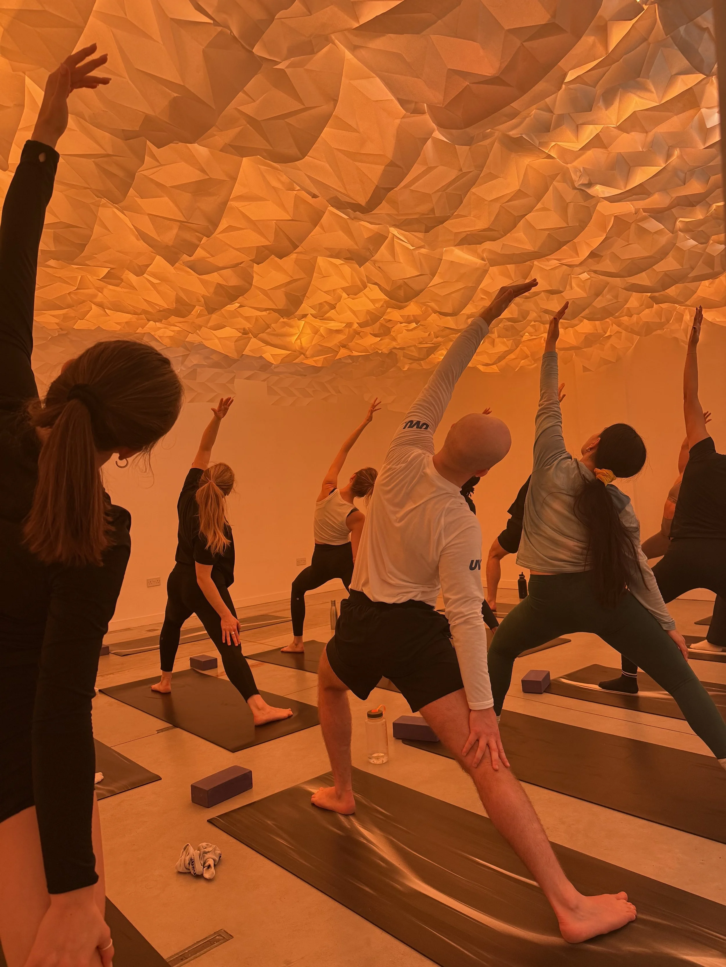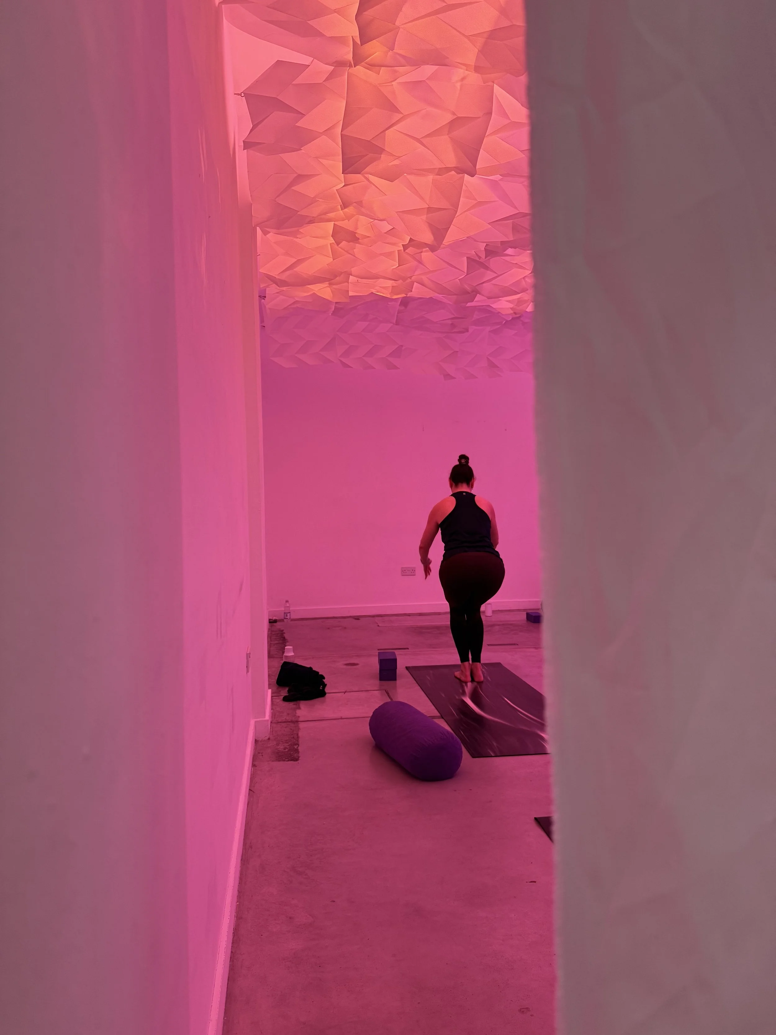 The Halcyon Collective launch weekend was a two-day programme produced in collaboration with ChromaYoga and Inner Vision. I led the project end to end, from concept development and scheduling through to on-site delivery. The programme centred around ChromaYoga’s multisensory movement classes, supported by a bespoke paper origami installation that I designed and built to diffuse coloured lighting throughout the space.